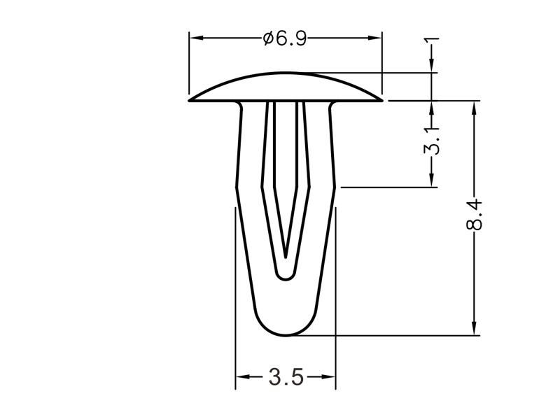 Mini Mounting Button. Material Nylon 66. Color Natural/Black. Mounting Hole Ø 3.1-3.2mm. Panel Thickness 2.0-2.5mm. Easy push-in installation with a neat finish.