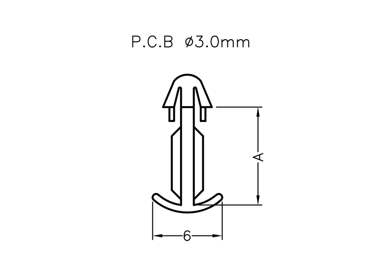 Push Clip Heat Sink. Mounting hole dia. Ø 3.0mm. Length 6.0mm. Material Nylon 66. Color Natural/Black.