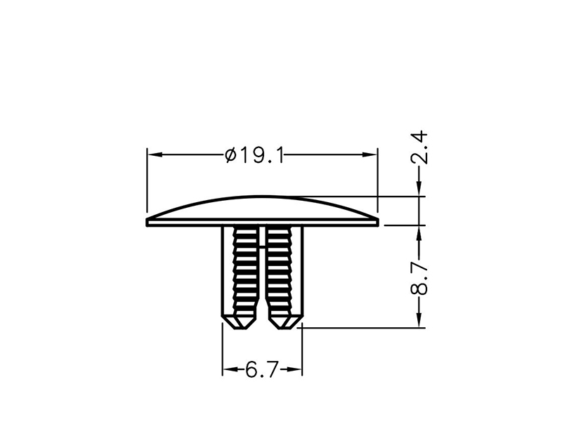 2-piece Barbed Rivet Snap-Together. Mounting Hole Dia. Ø7.1mm. Panel Thickness 8.8-12.8mmMaterial Nylon 66. Color Natural/Black. Also known as Ratchet Rivets