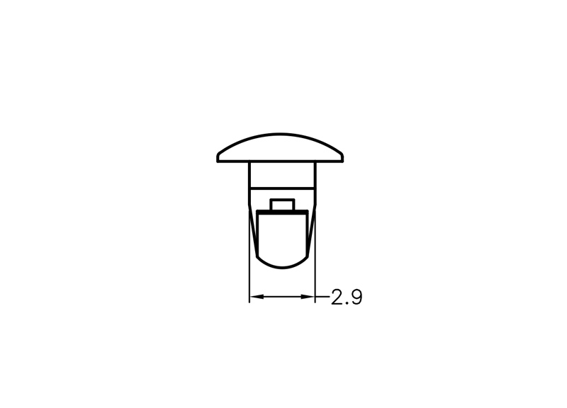 Snap Lock Rivet. Material Nylon 66. Mounting hole dia Ø 3.0mm. Panel Thickness 2.8mm. Color Natural/Black. This Mounting Button has a locking arrowhead which can be released from the PCB underside