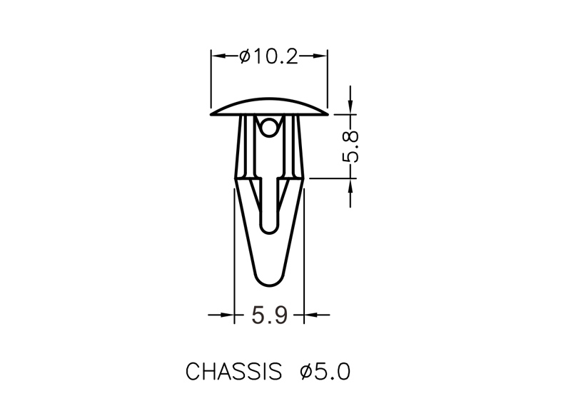 Mounting Button. Material Nylon 66. Color White/Black. Mounting Hole Ø 5.0mm. Easy push-in installation with a neat finish.