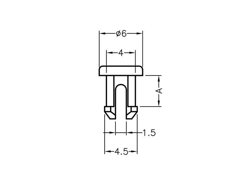 Snap Lock Pin. Mounting Hole dia. Ø 4.0mm. Material Nylon 66. Color Natural/Black. Suitable as push-fit panel fastener