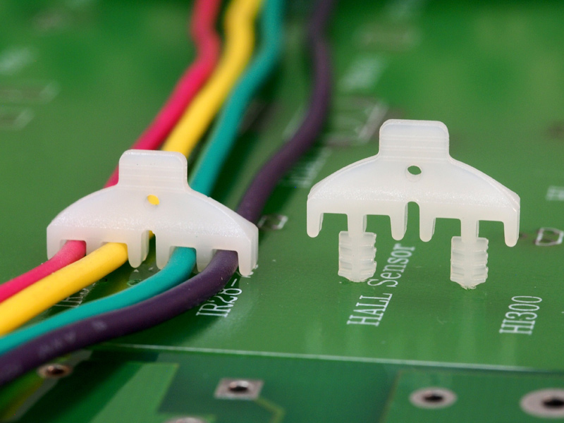 Fir Tree Cable Clip. Material Nylon 66. Color Natural/Black. Used to guide wires on (wooden) panels