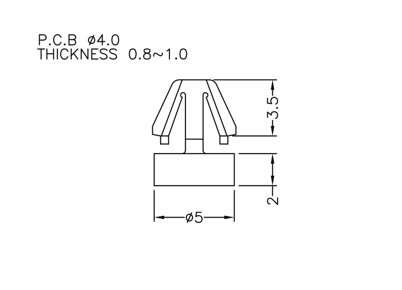 Rest support for a 4 mm mounting hole. Standoff height is 2 mm.