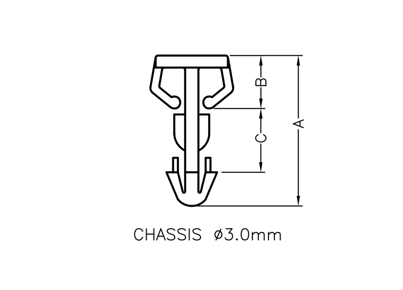 Push Clip Heat Sink. Hole dia. Ø 3.0mm. Nylon 66. Color Natural/Black.