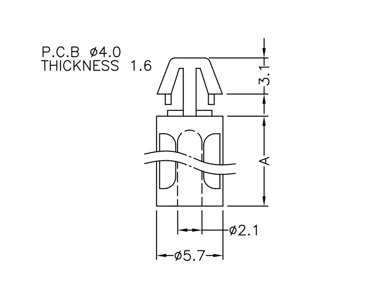 Self tapping rest support with a pilot hole of 2.1 mm and an arrowhead for a 4 mm mounting hole. Spacer length is 6.35 mm.