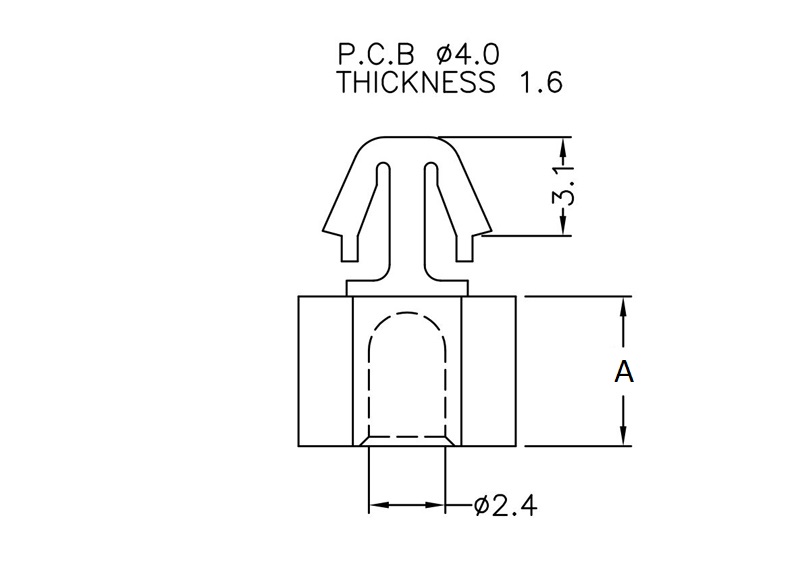 Snap lock hexagonal self tapping spacer with a pilot hole of 2.4 mm and an arrowhead for a 4 mm mounting hole. Spacer length is 4.7 mm.