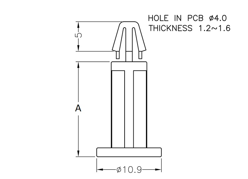 Rest support provided with an arrowhead for a 4 mm mounting hole. Standoff height 16 mm.