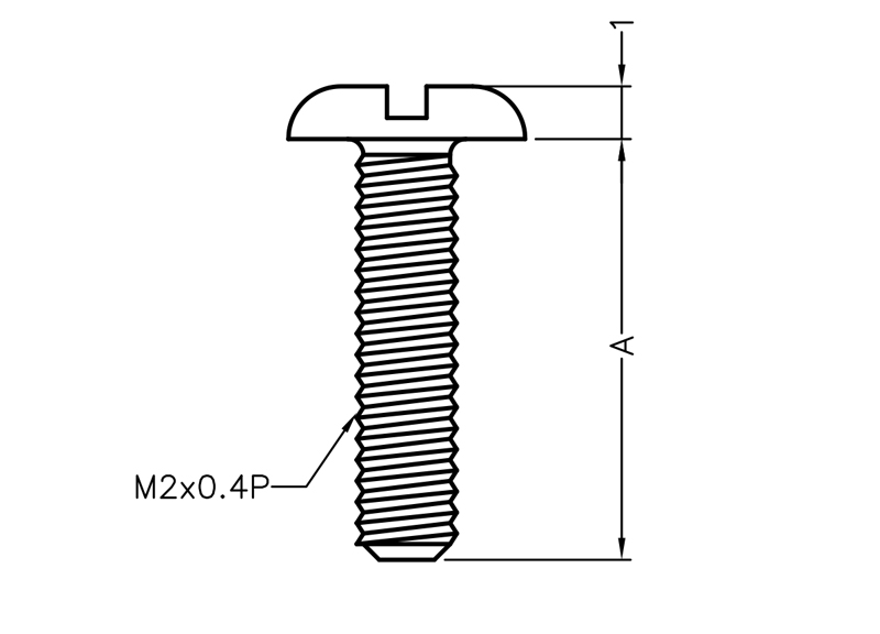 Slotted Pan Head Screw PA66 fully threaded M2 Head Ø 4.5mm Length 6.0mm