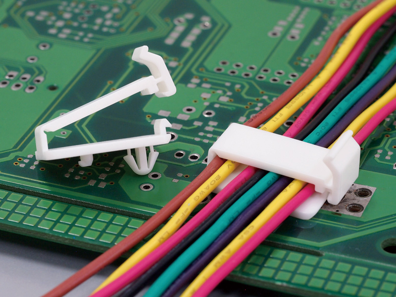 Push Mount Hinged Flat Cable Lock Clamp (WxH) 19.9×3.9mm. Max. Cable Width 27.0mm. Chassis hole dia. Ø4mm. Chassis Thickness 0.6-0.8mm. Nylon 66. Available in Natural or Black.