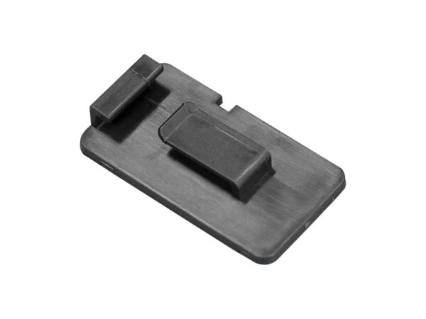 Side Entry Clamp with retention notch on Adhesive Base 28.5×16.0mm. Internal Dimensions (WxH) 18.3×2.2mm. Nylon 66. Color Natural or Black. The small notch prevents the object (cable or solid strip) from coming loose when mounted vertically.