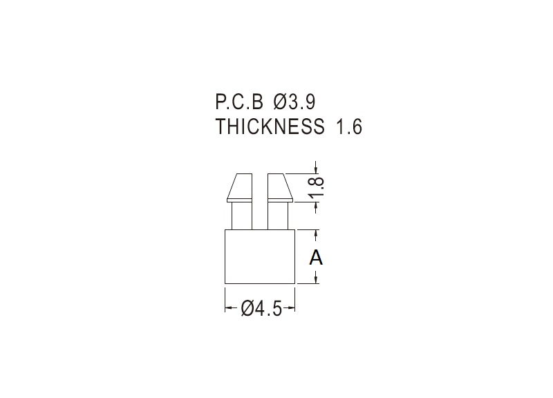 Rest support provided with a two prong snap lock for a 3.9 mm mounting hole. Spacer length 3.5 mm.