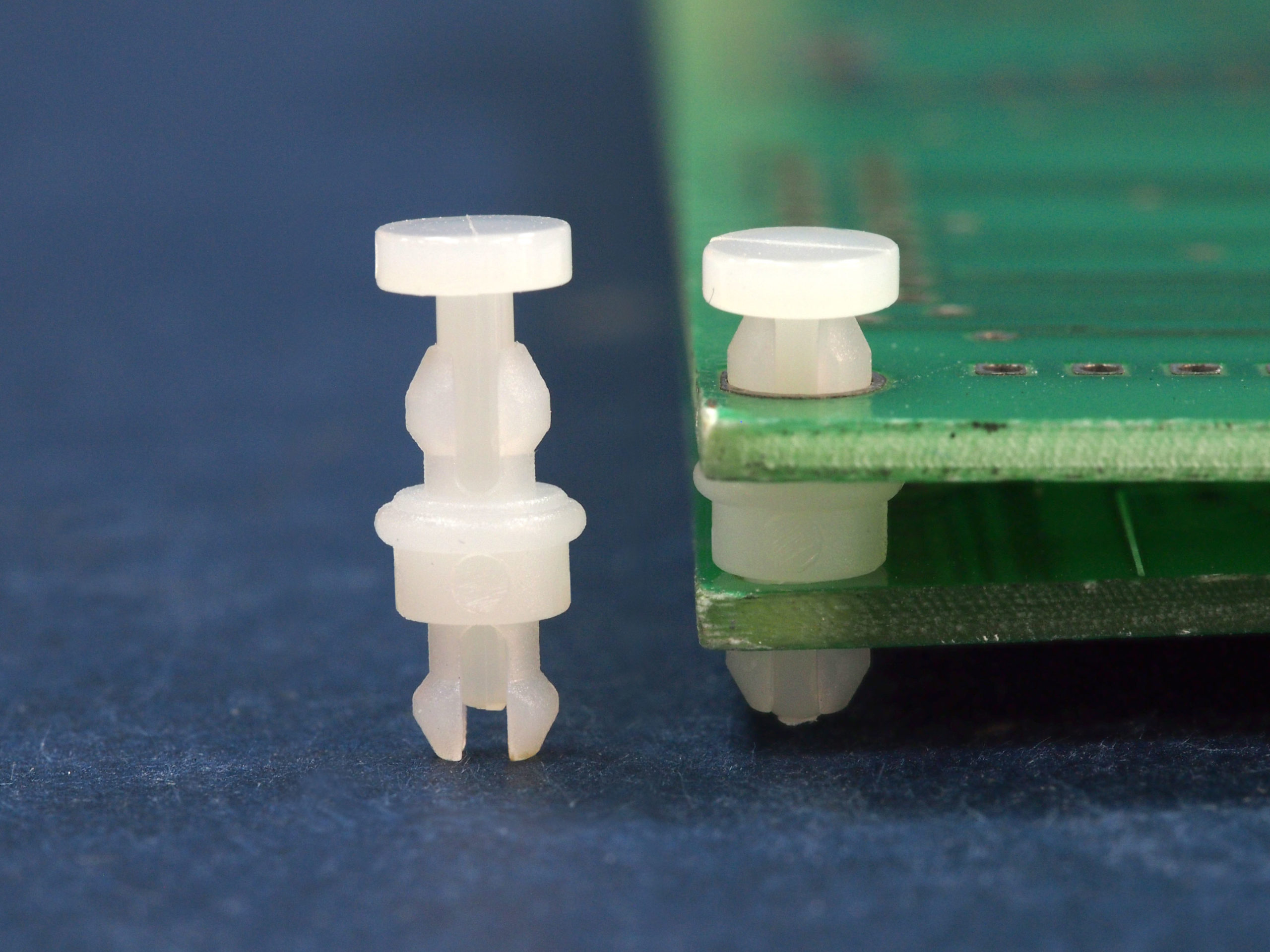 PCB support for 3 mm top and bottom panel hole. Firmly secured with removable locking pin (included). Spacer length 3.2 mm.