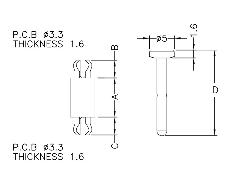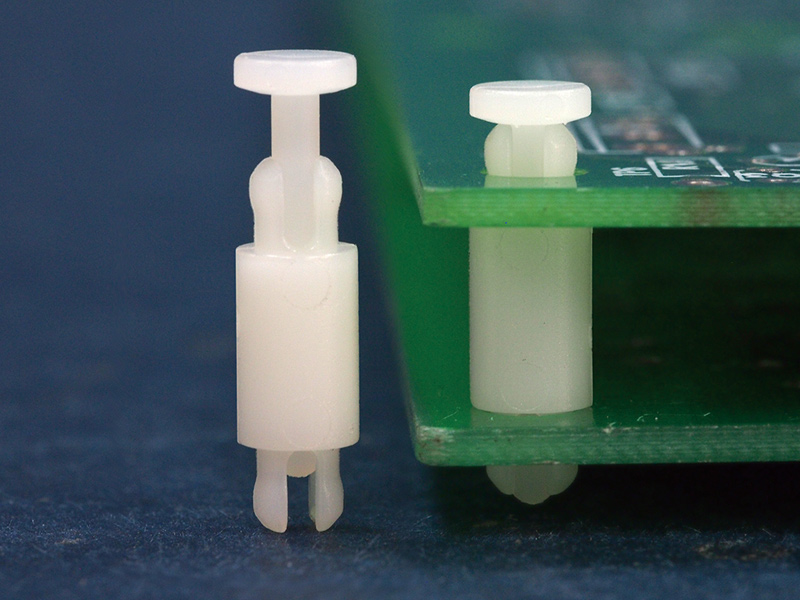 PCB support for 3.3 mm top and bottom panel hole. Firmly secured with removable locking pin (included). Standoff height 16 mm.