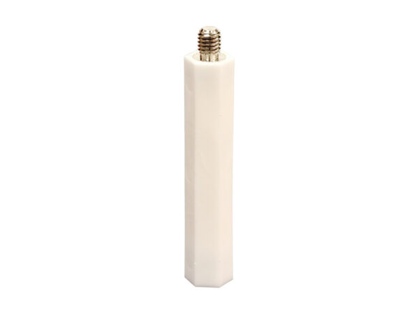 Metric Hexagonal M4 female/M5 male nylon spacer with metal threaded inserts for higher mechanical retention. Spacer body length is 50.0mm.