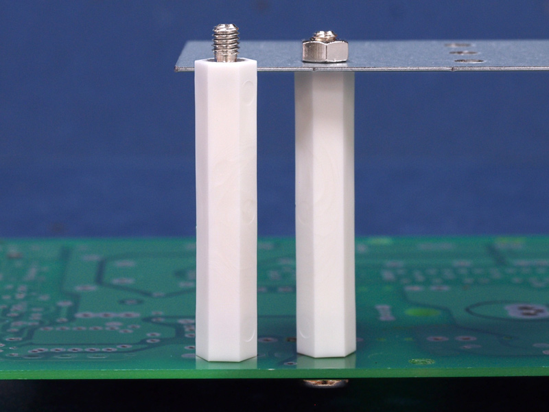 Metric Hexagonal M5 female/M6male nylon spacer with metal threaded inserts for higher mechanical retention. Spacer body length is 15 mm.
