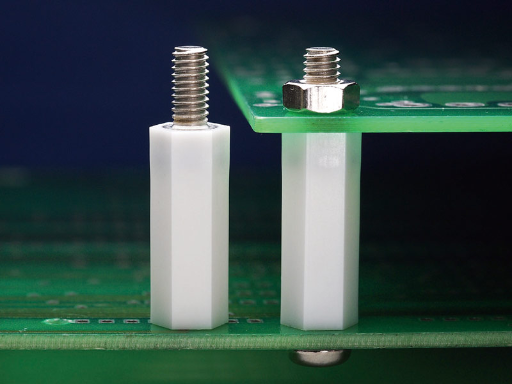Hexagonal M4 Female/Male nylon spacer with metal threaded inserts for higher mechanical retention. Spacer body length is 20 mm.