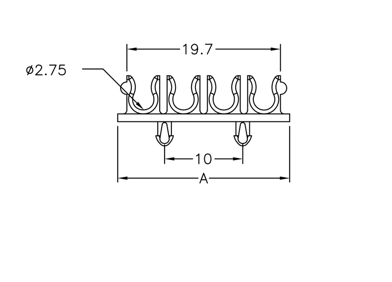 Snap-Fit Wire Mount 4-way. Holding dia. Ø2.75mm. Mounting Hole dia. Ø1.75mm. Panel Thickness 1.86mm. Base Dimensions (LxW) 19.7×9.5mm. Nylon 66. Available in Natural or Black.