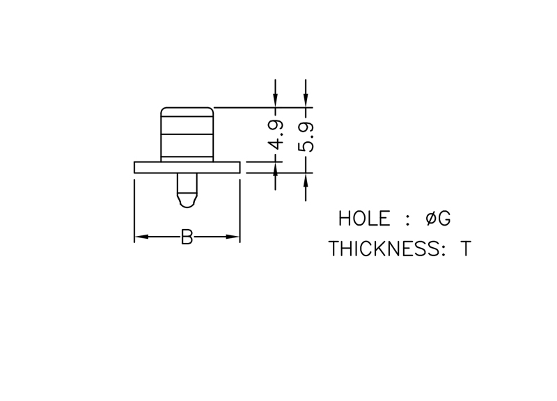 | Part no. | Material | Color | A max. C | B min. PHD | C max. PHD | D min. PT | E max. PT | Package |