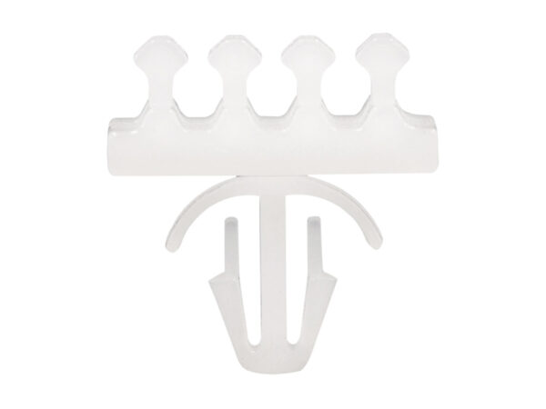 Snap-Lock Wire Mount 4-way. Holding dia. Ø1.4mm. Mounting Hole dia.Ø 2.5mm. Panel Thickness 1.6mm. Base Dimensions (LxW) 10.0×4.5mm. Nylon 66. Available in Natural or Black.