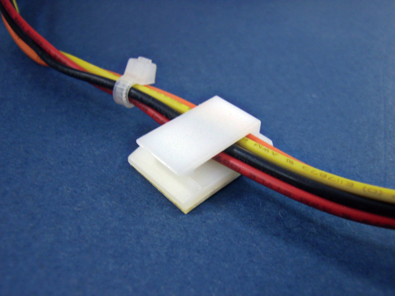 Adhesive Mount 19.8×14.0mm Lock Wire Clip Side Entry. Holding Area 13.1×3.2mm. Material Nylon 66. Available in Natural or Black
