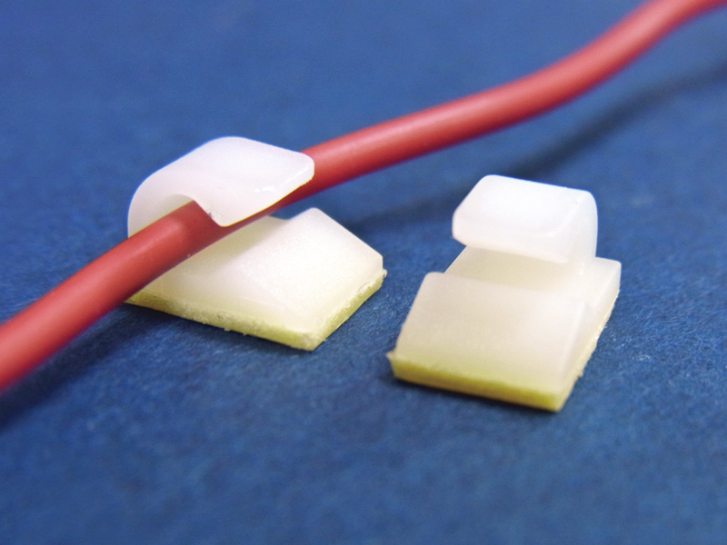 Adhesive Mount 8.5×6.0mm Round Adjustable Lock Wire Clip Side Entry. Holding dia. Ø3.0mm. Material Nylon 66. Available in Natural or Black