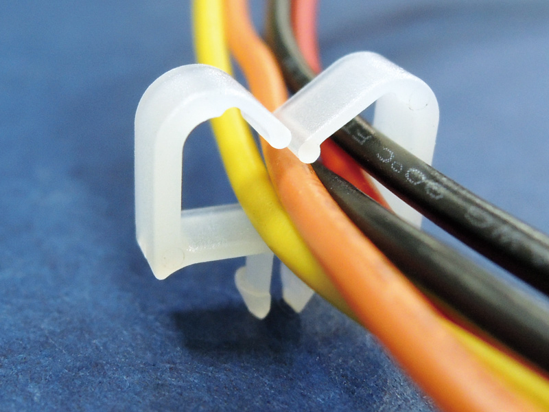 Snap In Wire Saddle Latch Gate (WxH) 10.0×6.3mm. Chassis Hole dia. Ø3.0mm. Chassis Thickness 2.0mm. Material Nylon 66. Available in Natural or Black.