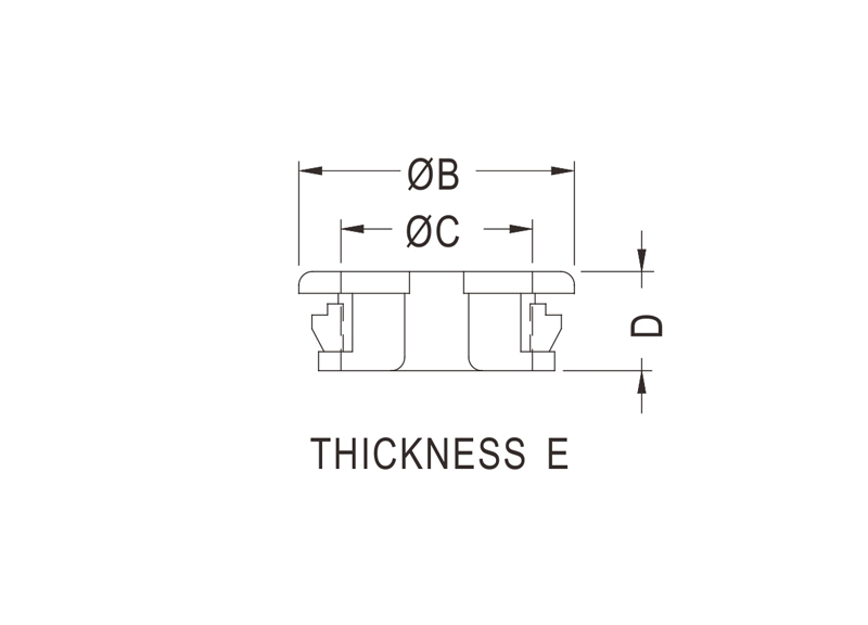 Nylon 66 Split or Open Bushing. Chassis Hole dia. Ø9.5mm. Panel Thickness 0.8-1.2mm. These Snap Bushings protect wires, cables, and tubing from sharp or uneven edges