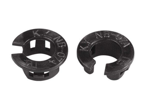 Nylon 66 Split or Open Bushing. Chassis Hole dia. Ø23.0mm. Panel Thickness 0.8-1.0mm. These Snap Bushings protect wires, cables, and tubing from sharp or uneven edges already assembled into holes. UL recognized.