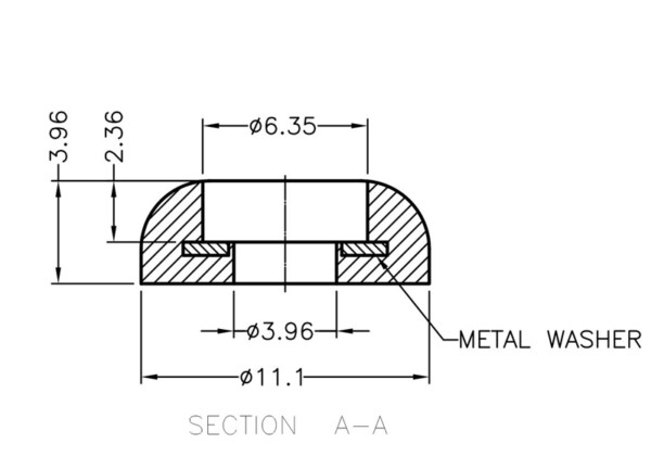Rubber Foot Black with Internal Metal Washer 11.1×3.96mm. Screw Mount for Ø3.96mm Mounting hole