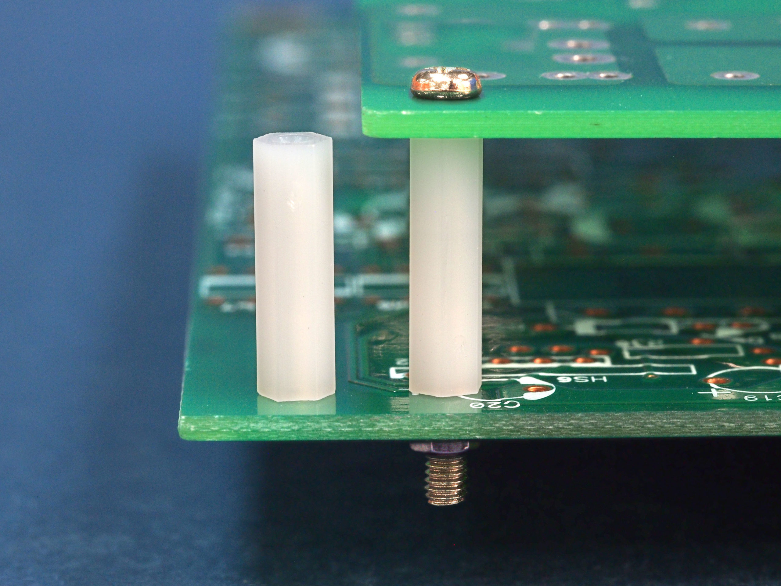 Metric tapped hex nylon spacers, female/female with an M2 metric thread throughout their length. Spacer length is 20 mm.