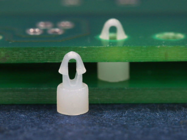 Push spacer rest support provided with a snap lock for a 2 mm mounting hole. Spacer length 3 mm.