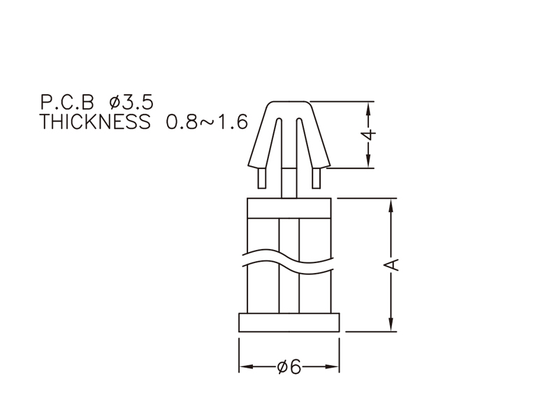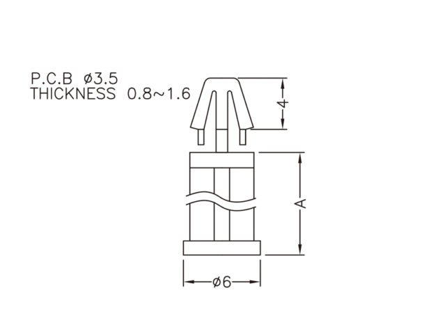 Rest support provided with a snap lock for a 3.5 mm mounting hole. Spacer length 8 mm.