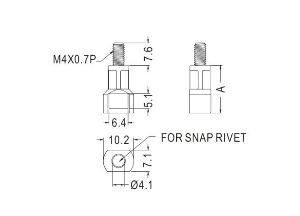 Threaded M4 PCB support rivet mount. To be used with our SR4 snap rivet series (sold separately). Spacer length is 15.9 mm.