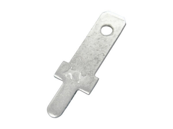 Straight Through Hole Solder Spade Terminal. PCB hole Ø1.7mm . Tin Plated Brass. Current Rating 10 AmpsTab size 2.8×0.5mm (.110″).