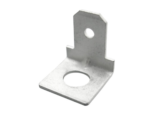 Stud Hole Right Angled Spade Terminal. Tin Plated Brass. Through Hole Screw Mount Ø4.3mm. Tab size 4.8×0.5mm (.187″).