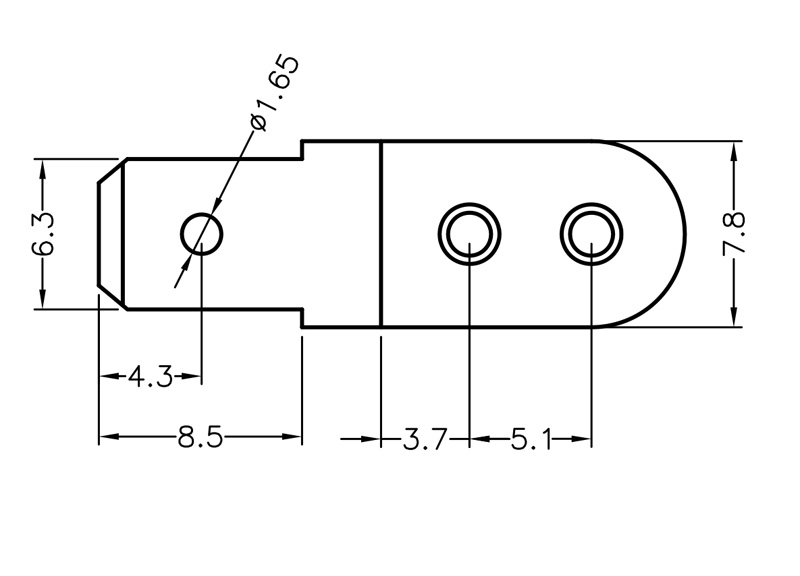 Stud Hole Straight Vertical Spade Terminal. Tin Plated Brass. Through Hole Screw Mount Ø3.0x2mm. Tab size 6.35×0.8mm (.250″).