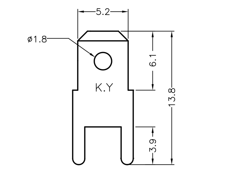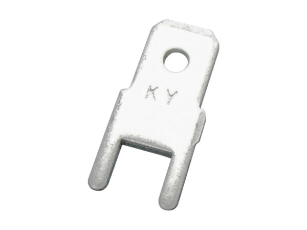 Straight Through Hole Solder Spade Terminal. Pitch 5.0mm. Tin Plated Brass. Current Rating 15 Amps. Tab size 5.2×0.8mm (.205″).