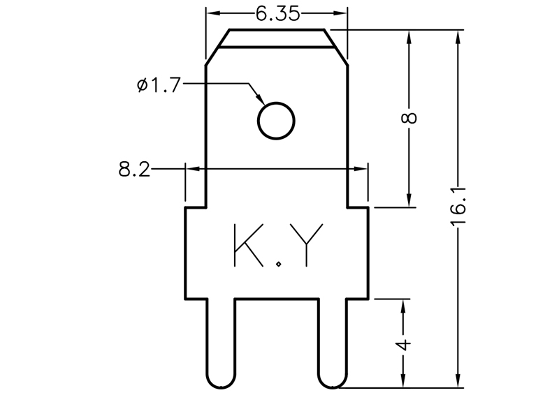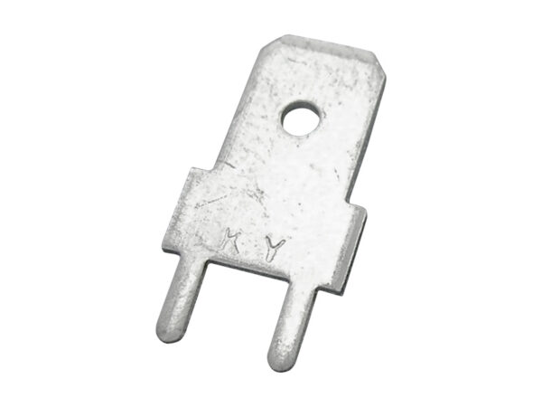 Straight Through Hole Solder Spade Terminal. Pitch 5.0mm. Tin Plated Brass. Current Rating 15 Amps. Tab size 6.35×0.8mm (.250″).