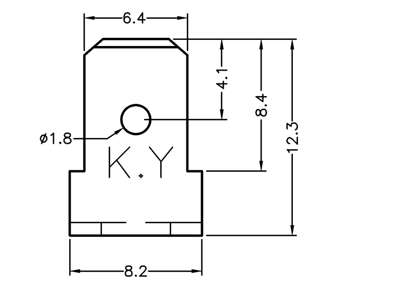 Stud Hole Right Angled Dual Spade Terminal. Tin Plated Brass. Through Hole Screw Mount Ø4.3mm. Tab size 6.35×0.8mm (.250″).