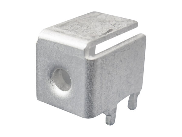 Right Angled or Horizontal Terminal with Ø 2.6mm hole for use with solid or stranded wire, crimp terminals, or lugs. Through Hole Mounting (THM) Current Rating 15 Amps. Made of Brass with Tin Plate. The compact design allows flexible placement in high-density wiring applications.