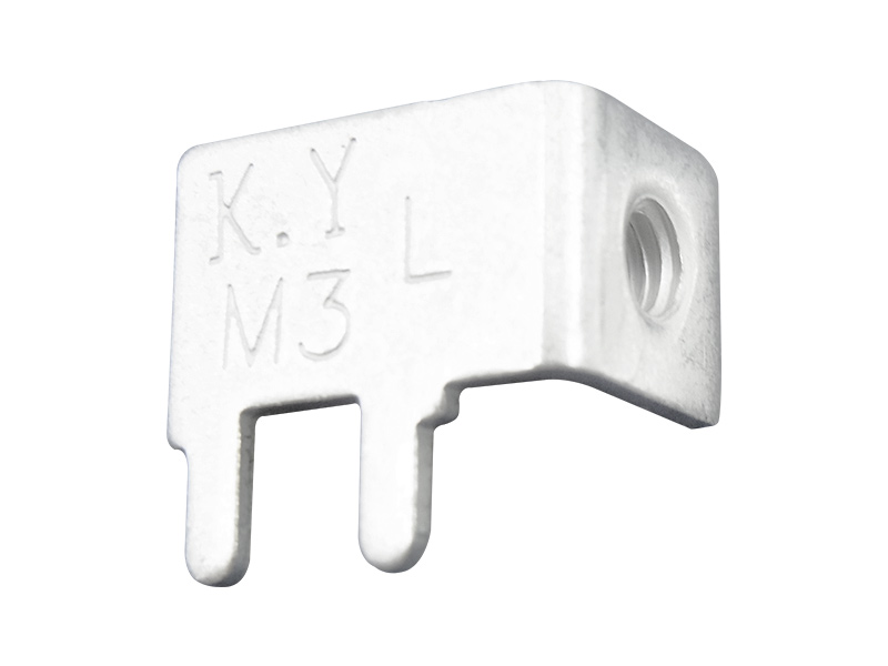 Through Hole Mount (THM) Right Angled Solder Terminal for Metric M3 Screw. Left Thread Orientation. Tin Plated Brass. Current Rating 15 Amps