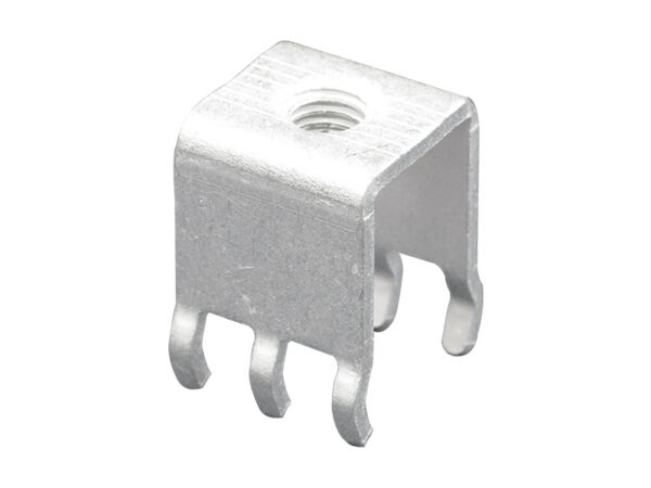 Top Entry or Vertical UNC 10-32 Screw Terminal for use with solid or stranded wire, crimp terminals, or lugs. Through Hole Mounting (THM) Current Rating 30 Amps. Made of Brass with Tin Plate. The compact design allows flexible placement in high-density wiring applications. Screw not included.