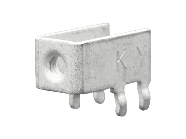 Right Angled or Horizontal M3 Screw Terminal for use with solid or stranded wire, crimp terminals, or lugs. Through Hole Snap-in Mounting (THM) Current Rating 15 Amps. Made of Brass with Tin Plate. The compact design allows flexible placement in high-density wiring applications. The screw is not included.