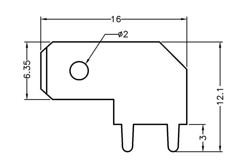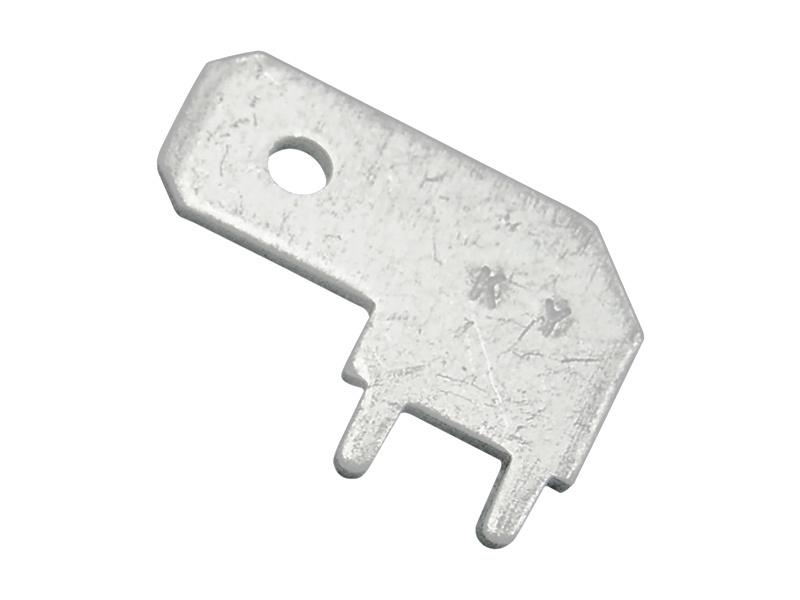 Through Hole Mount Right Angle PCB Male Spade Terminal. Tab size 6.35×0.8mm (.250″). Current rating 15A. Material Tin Plated Brass.