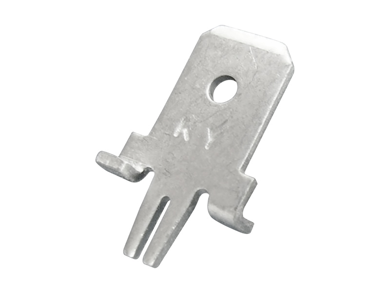 Straight Through Hole Solder Spade Terminal. Solder slot 3.0×1.0mm. Tin Plated Brass. Current Rating 35 Amps. Tab size 6.35×0.8mm (.250″). The Sturdi Mount Design keeps the terminal upright on the PCB and adds additional strenght during terminal mating