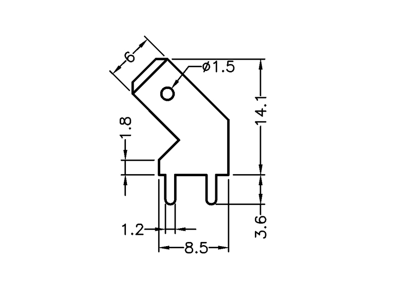 Through Hole Mount 45 Degree Angled PCB Male Spade Terminal. Tab size 6.0×0.8mm (.250″). Current rating 15A. Material Tin Plated Brass.