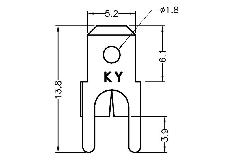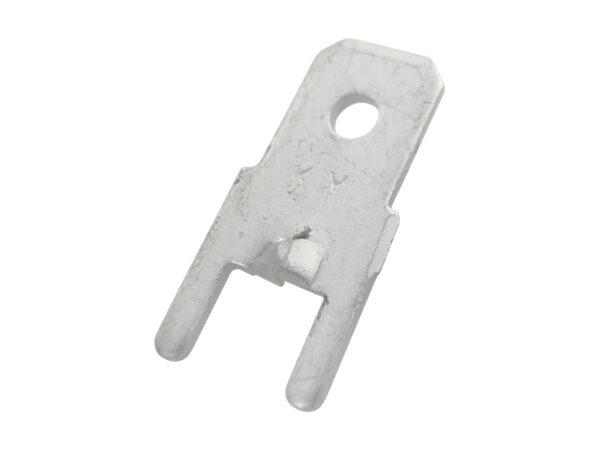 Straight Through Hole Solder Spade Terminal. Pitch 5mm. Tin Plated Brass. Current Rating 15 Amps. Tab size 5.2×0.8mm (.205″). The Sturdi Mount Design keeps the terminal upright on the PCB and adds additional strenght during terminal mating