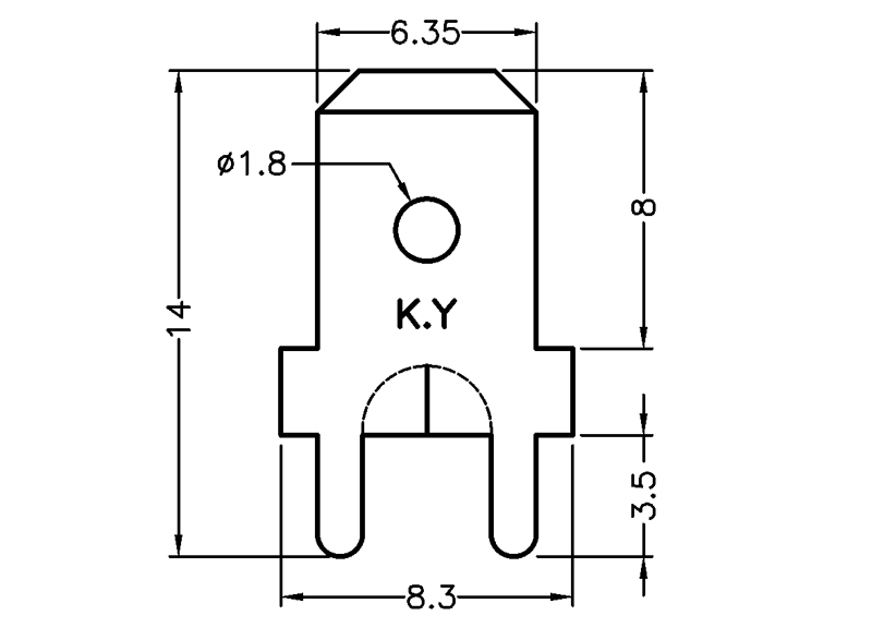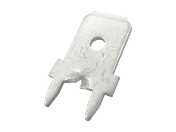 Straight Through Hole Solder Spade Terminal. Pitch 5.0mm. Tin Plated Brass. Current Rating 15 Amps. Tab size 6.35×0.8mm (.250″). The Sturdi Mount Design keeps the terminal upright on the PCB and adds additional strenght during terminal mating