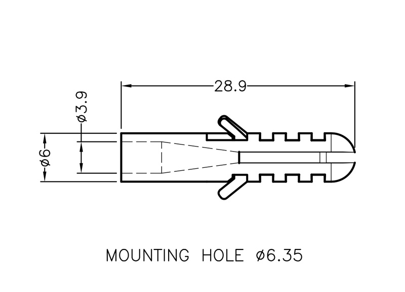 Polypropylene Universal Wall Anchors. Drill size Ø 6.0mm. Length 28.9mm. Color Natural. Also known as wall or rawl plugs, they expand when a screw is inserted, gripping the wall securely to support screw fixings.